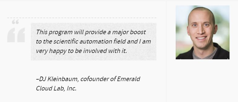 CMU的这个新的硕士项目归在 Computational Biology Department 计算生物系里,他们的宗旨是:”The new M.S. in Automated Science: Biological Experimentation will train students in all aspects relevant to the creation of “self-driving instruments” that use artificial intelligence to carry out a scientific research campaign with minimal human input.“