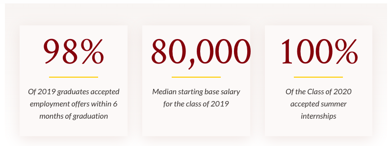 申请背景不限,仅有不到30%的商科毕业生,其余学术背景申请学术中,心理学,经济学,传媒学籍政治科学等学术背景学生也很有优势。这个专业超过90%的学生工作经历不足一年,可以说对新手友好。针对中国和伊朗的国际申请者,从5月1至9月1之间,暂时接受Duolingo英文测试成绩。最低要求为105分,达到135分可免除上ESL课程。