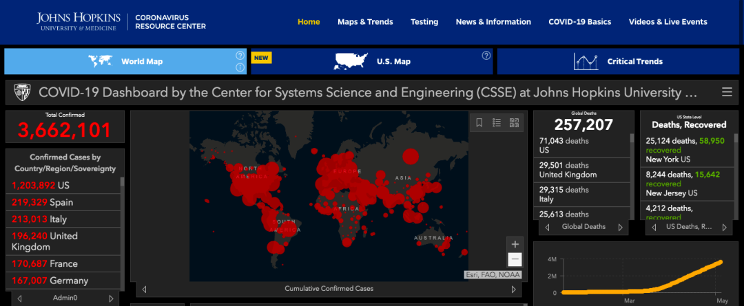 此次新冠肺炎爆发,全球诸多机构都推出了各自不同的数据追踪地图,而约翰霍普金斯大学(Johns Hopkins University 以下简称JHU)却以最全面、正确和快速的数据统计拔得头筹,这是源于:
