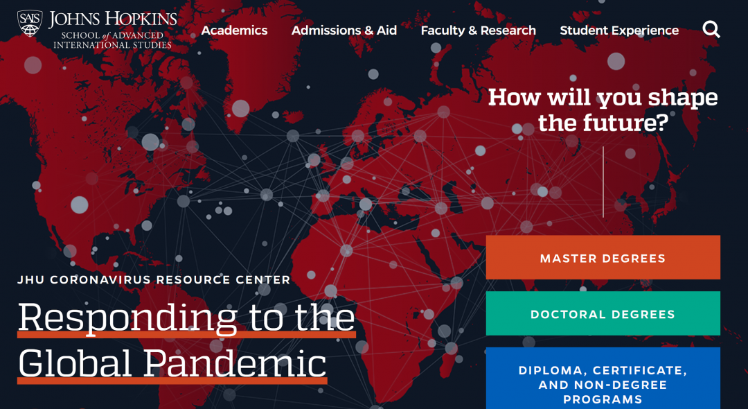 而在疫情期间,SAIS学院也致力于帮助学生找到应对后疫情时代的办法,学院以“How will you shape the future” 你怎样塑造未来?强调如果让学生在未来的国际经济与金融、国际事务、国际公共政策、区域发展中发挥领导的作用。
