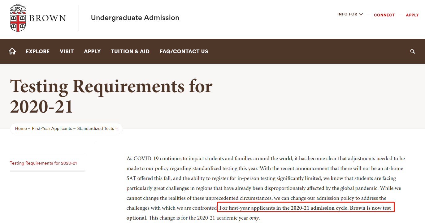 要注意的是,布朗的“Test Optional”政策与其它藤校一样,只适用于2020年秋季申请这一年。