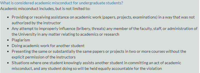 University of Connecticut 对于学术诚信的要求极为严格,任何违反学校学术诚信准则的行为都会被严肃处罚。学校同时也要求在校的每一位学生和科研人员严格遵守学术诚信并监督和维护校园的学术诚信环境。