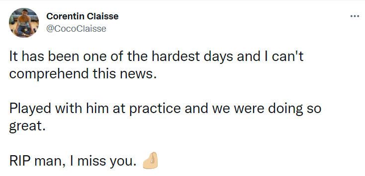 队友 Corentin Claisse 也发布推文悼念: