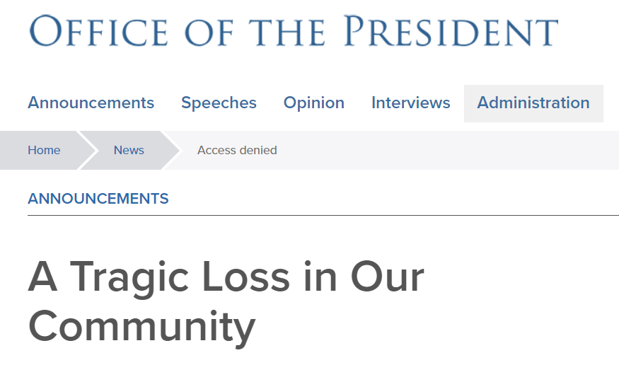 Bollinger 写道:「这个消息既让人极度悲伤,又令人深感震惊,因为它发生在离我们校园仅几步之遥的地方。我代表整个社区,向Davide的家人致以最深切的哀悼。」