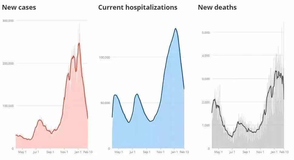 可见拜登政府强化口罩令和保持社交距离等防疫措施确实起了效果,当然疫苗也起了不可估量的作用。