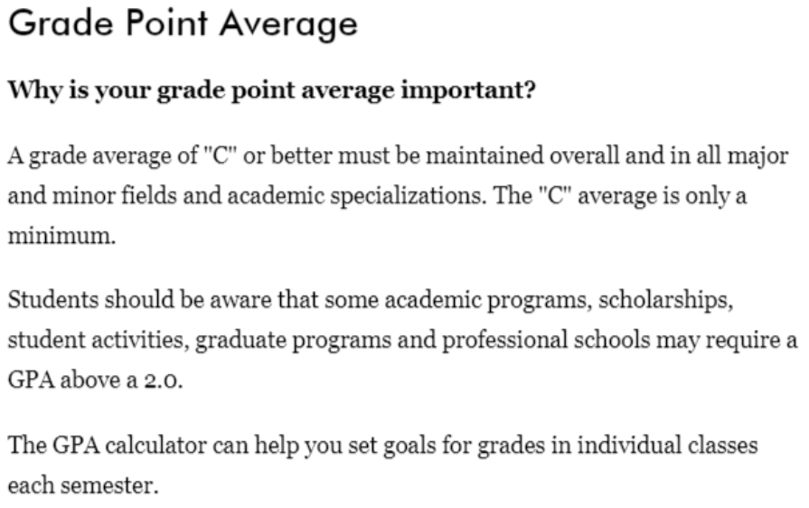 Baylor要求本科的学生必须在整个学业中保持“C”或更高的平均成绩,也就是GPA在2.0以上。
