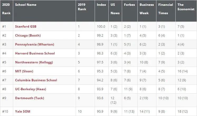 眼看着2020年还剩最后几天了,我们迎来了最后一个榜单,MBA排名终于出炉了!近日,Poets&Quants融合了目前最具权威的五大排名网站的统计数据,发布了2020-2021全美最佳MBA排名榜单。