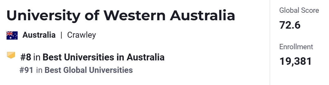 2025年,UWA位列U.S. News全澳第8、世界第91位。