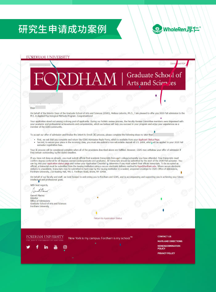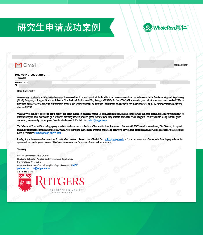 最终Z同学成功斩获哥伦比亚大学心理学专业录取,得以继续在研究生阶段探索专业领域,为未来申请博士学位打下良好基础。