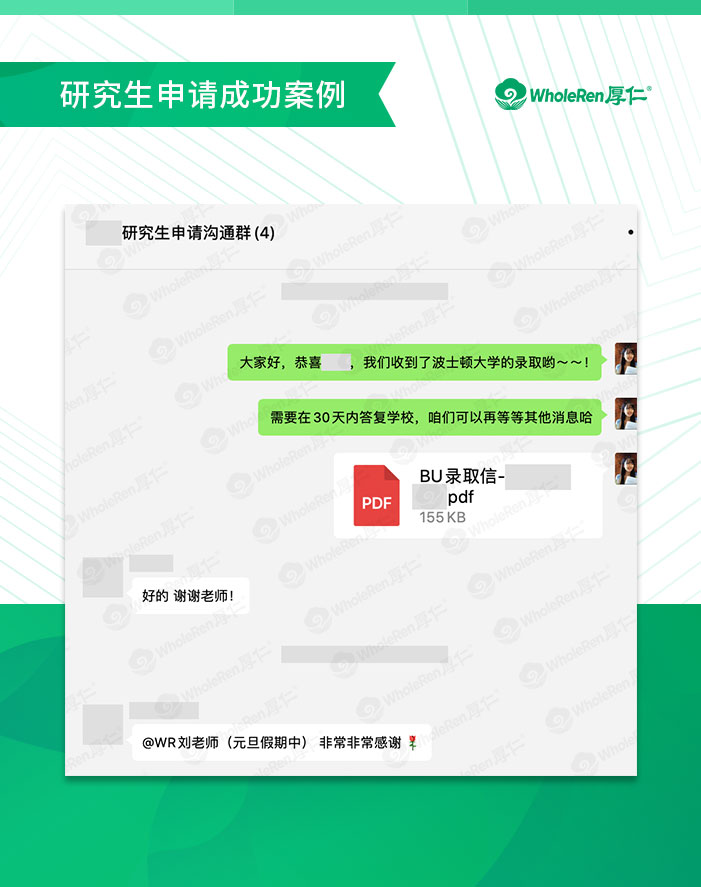 此前的两三段实习都是在国内的暑期实习,含金量并不高,厚仁老师在文书中重点突出L同学的工作难度和知识技能,把闪光点放大。 L同学最终获得波士顿大学等多所名校录取,祝贺!