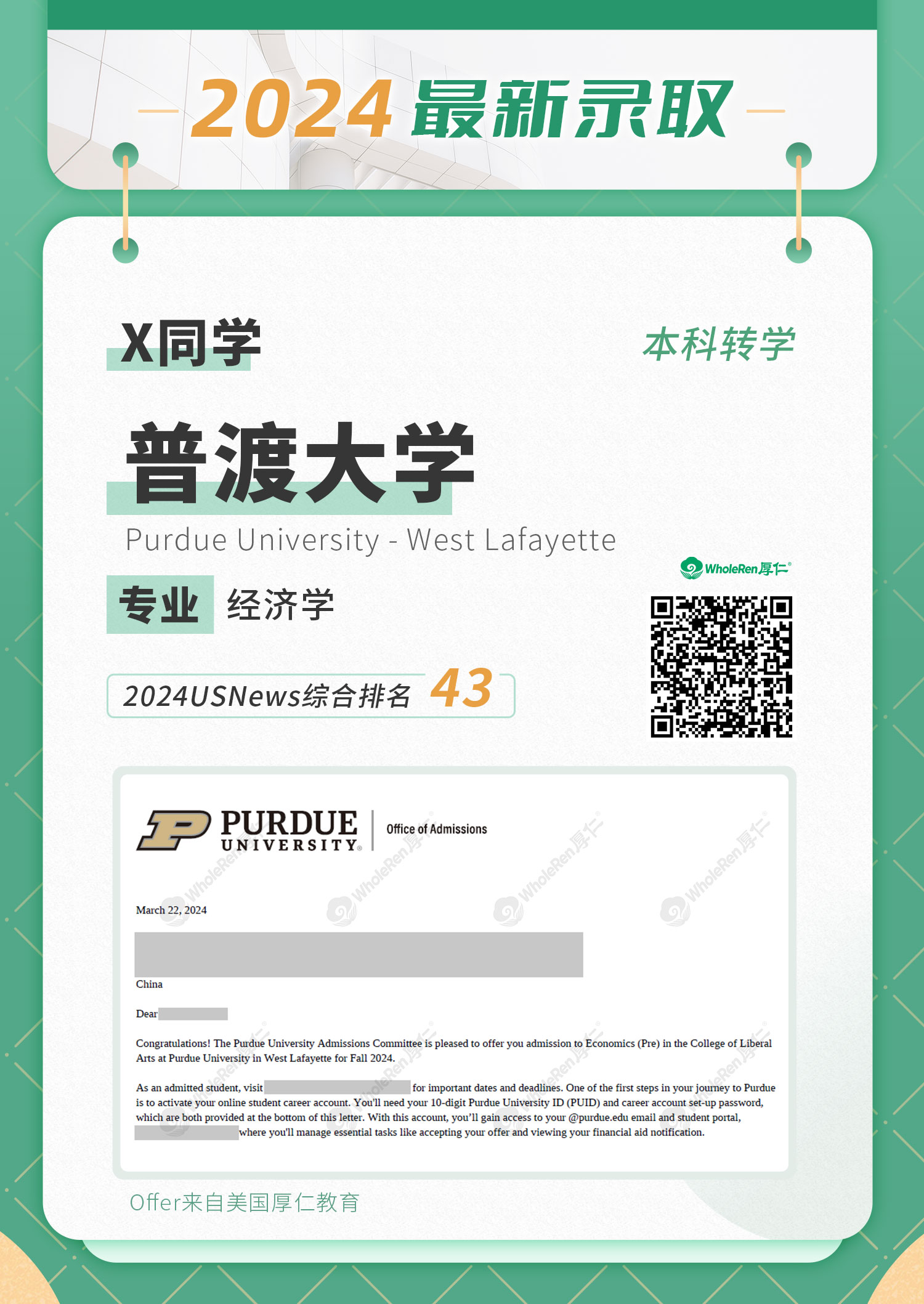 录取结果:普渡大学 Purdue University
