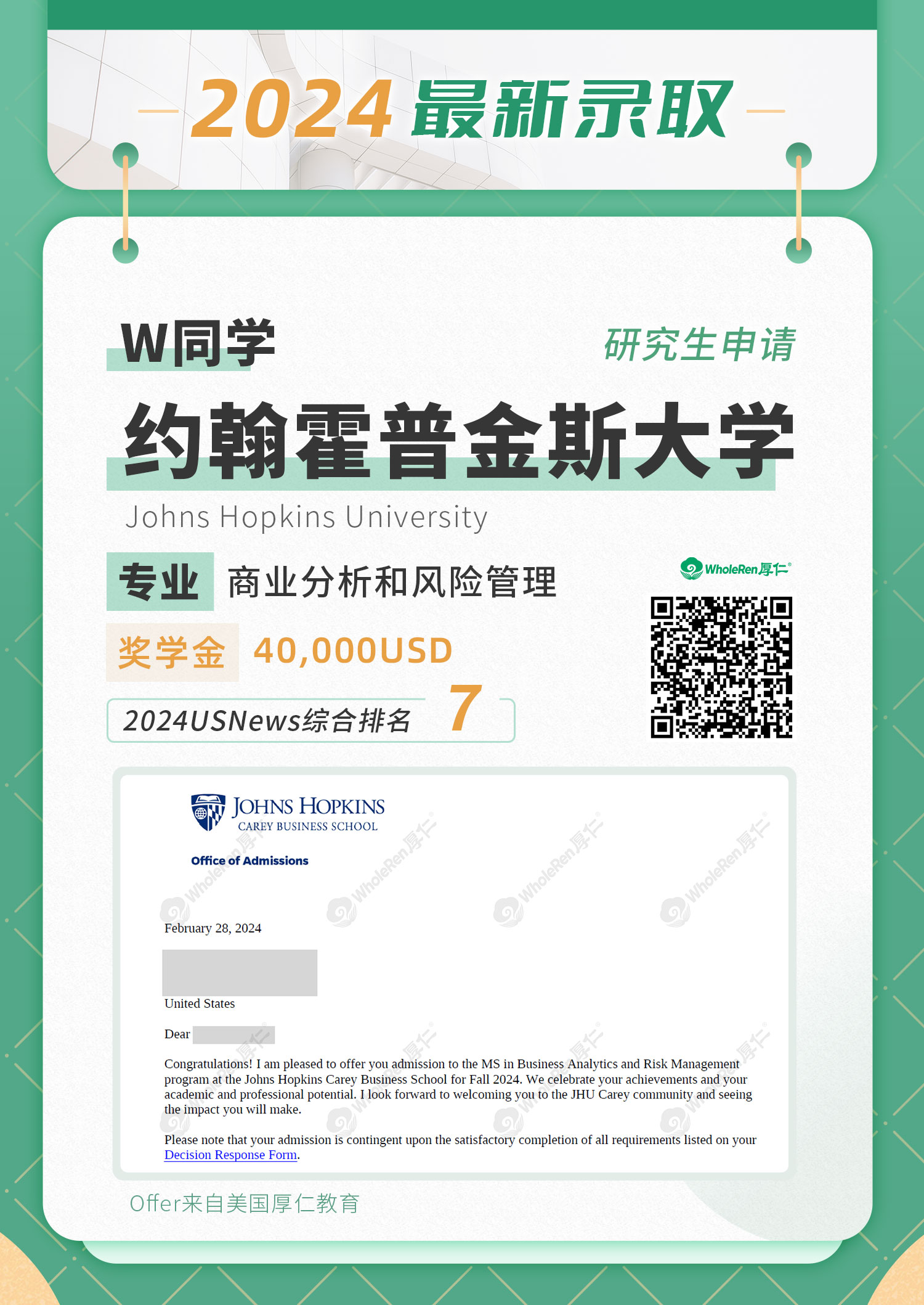 最终W同学,成功收获芝加哥大学,宾夕法尼亚大学,约翰霍普金斯大学,华大圣路易斯等美国顶级院校Offer。恭喜W同学,祝一帆风顺,未来可期!