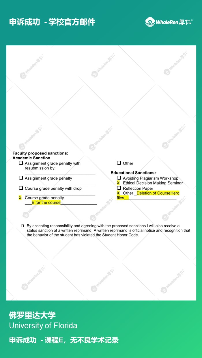 专家老师发现J同学在之前并不知道上传quiz答案是很严重的违纪行为,于是指导J同学了解美国大学的学术制度,并通过合理的解释获得老师的理解,但是由于违反了学校规定,给予课程E的处分,没有不良学术记录。