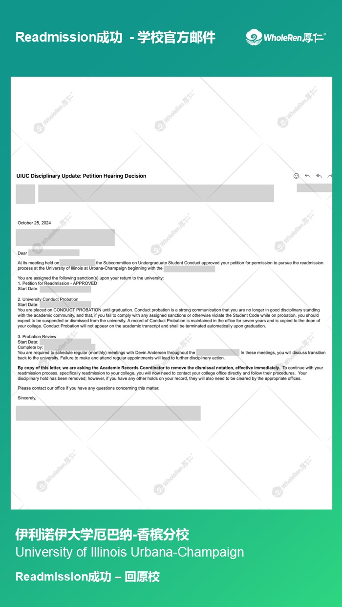 在专家老师的帮助下,完成优质文书,证明自己的学习能力,最终顺利Readmission返回原校继续学业。