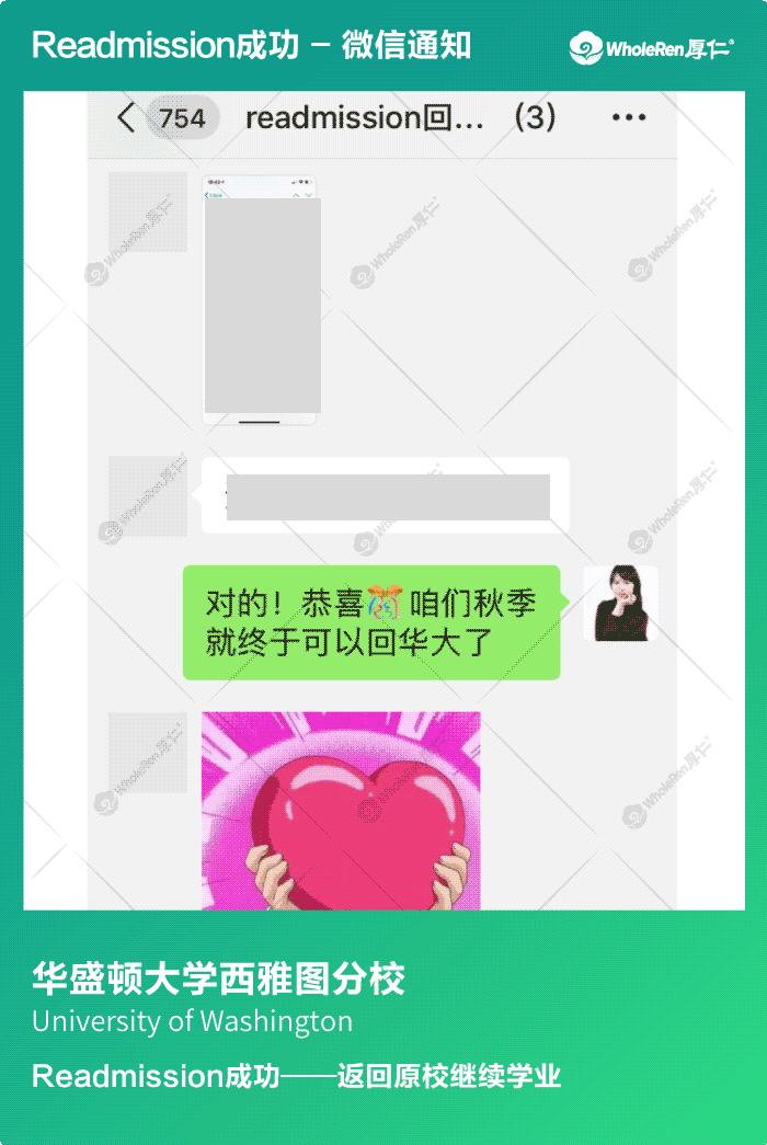 两年后,Z同学想申请回原校,专家老师帮助Z同学制定了申请方案,最终成功帮助Z同学顺利Readmission回到了华大。