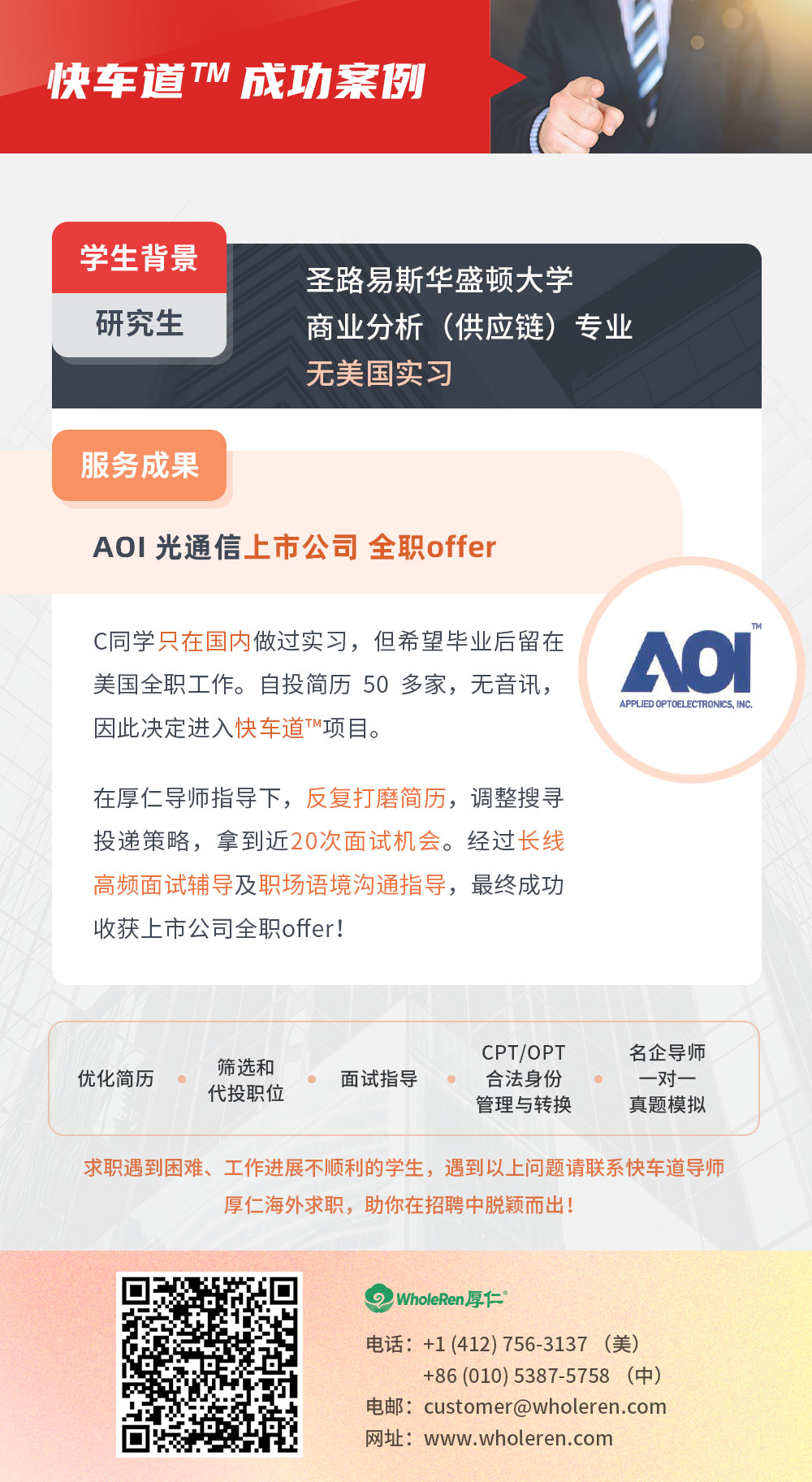 服务成果:AOI 光通信上市公司 全职offer
