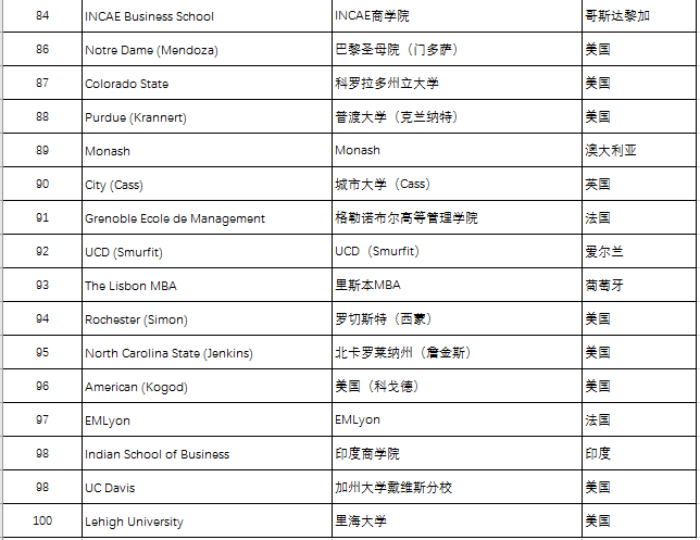 本次排名第一的是巴黎高等商学院,在排名的Top100所中,有15所来自美国,可选择性还是非常强的。