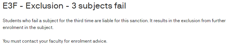 如果收到学术警告的学生连续两个学期成绩无法达到minimum rate of progress,或者连续三次未能通过一门课程,则有可能因为成绩差而被停学或开除(Excluded)。Exclusion的时间通常为一个学年。在停学时间结束后,学生可以可以申请重新入学(Readmission)。学生在重新入学申请时必须提交停学期间的学术成绩,以证明有能力达到学校的学术标准并成功克服的之前导致成绩差的问题。如果复学申请成功,学生将以Academic Caution的状态开始新的学习。